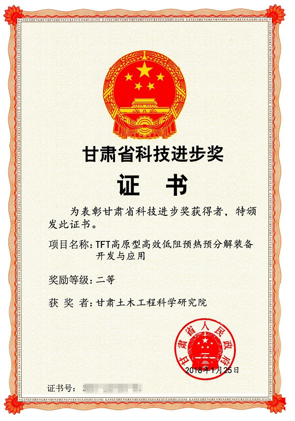2018年1月17日,甘肅省政府印發(fā)《甘肅省人民政府關(guān)于2017年度甘肅省科學(xué)技術(shù)獎勵的決定》。我院聯(lián)合張掖市山丹鐵騎水泥有限責(zé)任公司申報(bào)的“TFT高原型高效低阻預(yù)熱預(yù)分解系統(tǒng)裝備與應(yīng)用”項(xiàng)目榮獲2017年度甘肅省科技進(jìn)步二等獎。