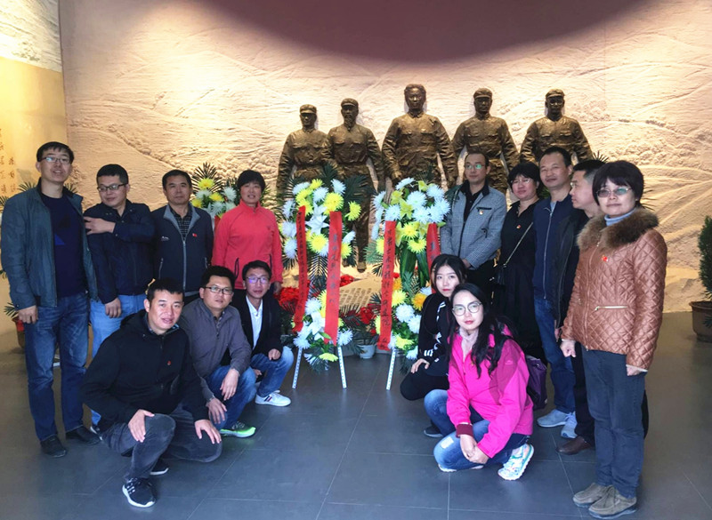 在莊嚴(yán)肅穆的紀(jì)念館前,大家奏唱國際歌,向革命先烈敬獻(xiàn)花籃鞠躬致敬,并面向黨旗,重溫了入黨誓詞,重新感受了那份莊重的承諾,那份厚重的責(zé)任。