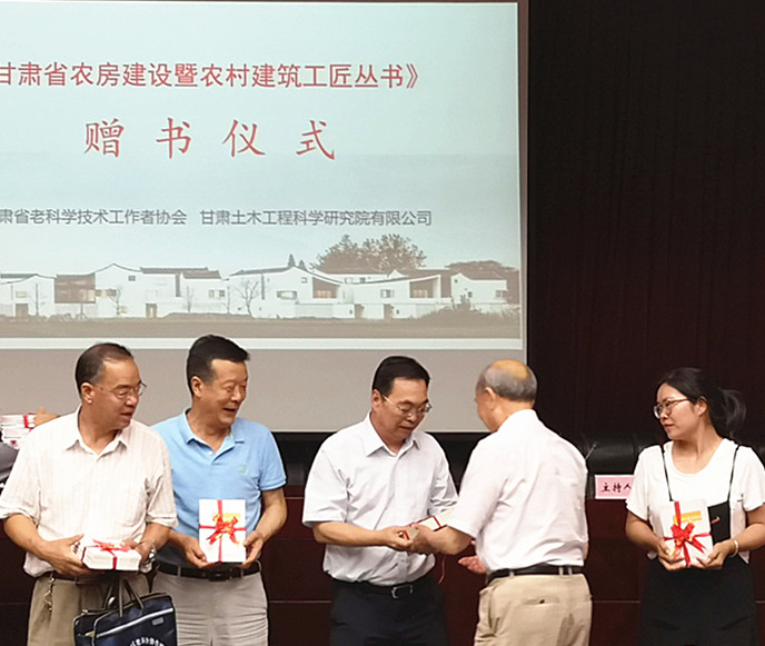 由我公司和甘肅省老科學(xué)技術(shù)工作者協(xié)會共同主編完成的《甘肅省農(nóng)房建設(shè)暨農(nóng)村建筑工匠叢書》(以下簡稱《叢書》)于2019年7月正式出版發(fā)行,并于7月30日在蘭州舉行了贈書儀式。甘肅省科協(xié)、省市發(fā)改、資源、環(huán)保、住建、工信、科技、墻改等政府部門的代表,以及甘肅省土木建筑協(xié)會、省建材行業(yè)協(xié)會等相關(guān)協(xié)會的代表共120多人參加了本次儀式。甘肅省老科學(xué)技術(shù)工作者協(xié)會會長劉祖和和公司黨委書記、董事長、總經(jīng)理董紅健為大家進行現(xiàn)場贈書。