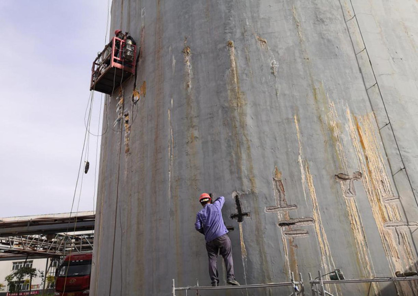 6月9日下午,公司黨委書記、董事長董紅健帶隊(duì)到公司建筑和設(shè)備防腐研究所承攬的西部礦業(yè)鋅業(yè)分公司儲(chǔ)液罐漏液防腐維修項(xiàng)目工地進(jìn)行檢查,公司財(cái)務(wù)部部長汪繼祥、建筑和設(shè)備防腐研究所所長陳鐵海陪同檢查。