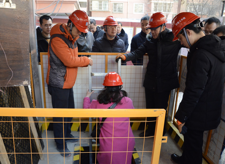 參會(huì)領(lǐng)導(dǎo)、專家和專業(yè)技術(shù)人員首先到蘭州市大砂坪甘南花園老舊小區(qū)改造項(xiàng)目現(xiàn)場(chǎng)觀摩了由公司實(shí)施的該小區(qū)1-3號(hào)樓頂升糾偏加固施工,排隊(duì)依次深入樓基礎(chǔ)導(dǎo)坑靜壓樁頂升托換作業(yè)面,實(shí)地考察了解了公司面對(duì)施工作業(yè)樓宇2樓及以上居民未搬離、現(xiàn)場(chǎng)場(chǎng)地狹小局促、施工條件較差、作業(yè)環(huán)境復(fù)雜、管理難度大等困難,在保證居民正常生活和居住安全、施工進(jìn)度和質(zhì)量前提下,精心策劃和采取的設(shè)計(jì)、加固方案以及施工工藝、安全和管理措施。