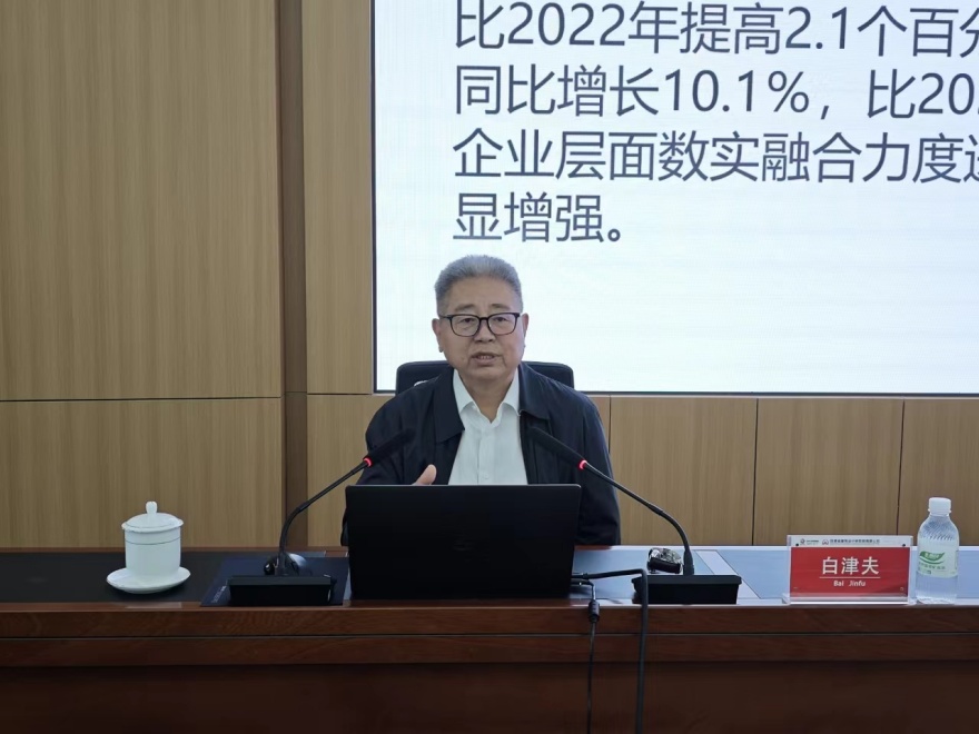 白津夫院長圍繞“黨的二十屆三中全會數(shù)字經(jīng)濟發(fā)展新論斷、我國數(shù)字經(jīng)濟發(fā)展進入新階段、企業(yè)數(shù)智化發(fā)展新路徑、營造融合發(fā)展新場景”等四個方面,以宏大的視野、敏銳的視角深入闡釋了數(shù)字經(jīng)濟在全球化背景下的戰(zhàn)略意義及對新發(fā)展格局的重大影響,為集團公司進一步探索數(shù)字化發(fā)展新路徑、新模式、新業(yè)態(tài),加快推進數(shù)實融合、實現(xiàn)數(shù)字化綠色化雙轉(zhuǎn)型提供了具體指導(dǎo)。