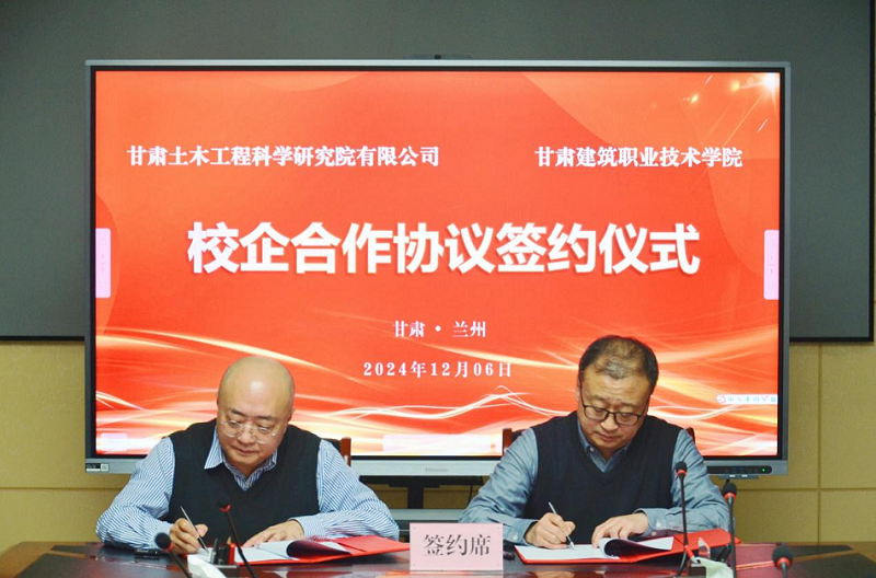 為了進(jìn)一步深化校企合作,推動校企共贏發(fā)展。近日,土木工程院和甘肅建筑職業(yè)學(xué)院舉行校企合作簽約儀式。甘肅工程咨詢集團(tuán)副總經(jīng)理、土木工程院董事長曹慶,甘肅建筑職業(yè)技術(shù)學(xué)院黨委副書記、校長黨星海出席了本次儀式,雙方相關(guān)部門負(fù)責(zé)人參加活動。