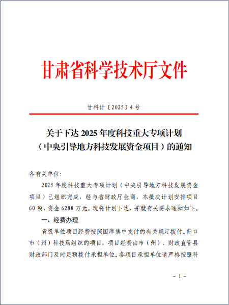 此次獲得甘肅省科技重大專項計劃立項,是對我公司科技創(chuàng)新和成果轉(zhuǎn)化工作的充分肯定,公司將以此為契機,加大研發(fā)投入,加快推進項目建設(shè),力爭早日實現(xiàn)項目產(chǎn)業(yè)化,為甘肅省經(jīng)濟社會高質(zhì)量發(fā)展做出新的貢獻。