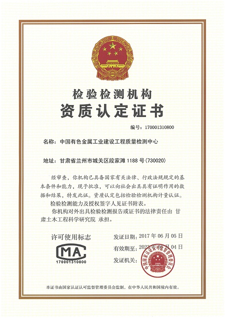 中國有色金屬工業(yè)建設(shè)工程質(zhì)量檢測(cè)中心自1995年初次通過國家級(jí)檢驗(yàn)檢測(cè)機(jī)構(gòu)資質(zhì)認(rèn)定,法律地位明確,組織機(jī)構(gòu)健全,人員能力、儀器設(shè)備配置、場(chǎng)所環(huán)境條件等均滿足檢驗(yàn)檢測(cè)工作要求。具備建筑材料、巖土工程、工程結(jié)構(gòu)、建筑節(jié)能、室內(nèi)環(huán)境、鋼結(jié)構(gòu)檢測(cè)能力,通過了17類產(chǎn)品,147個(gè)參數(shù)的檢測(cè)能力認(rèn)定。期間經(jīng)歷多次監(jiān)督評(píng)審、換證復(fù)評(píng)審,持續(xù)有效運(yùn)行25年。
